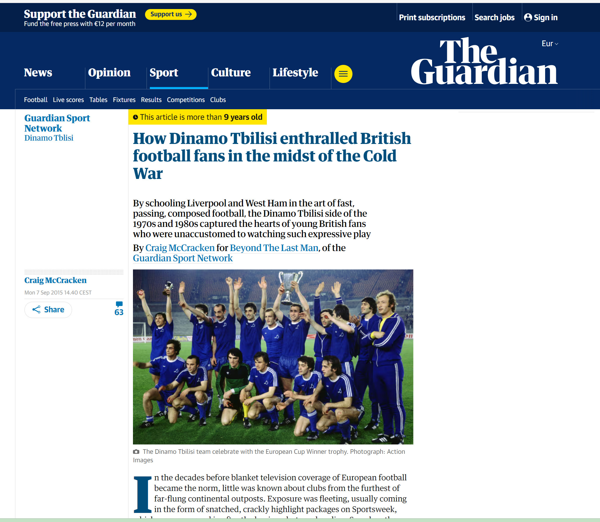 1981 წლის 13 მაისი ქართული ფეხბურთისთვის ღირშესანიშნავი თარიღია. სწორედ ამ დღეს UEFA-ს ევროპის თასების მფლობელთა თასის 1980-1981 წლების 21-ე გათამაშების გამარჯვებული თბილისის „დინამო“ გახდა.